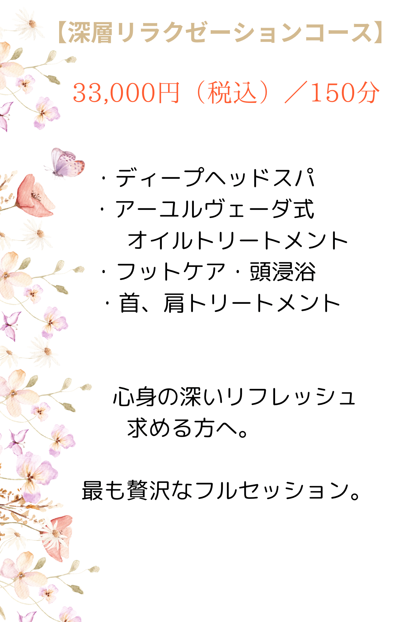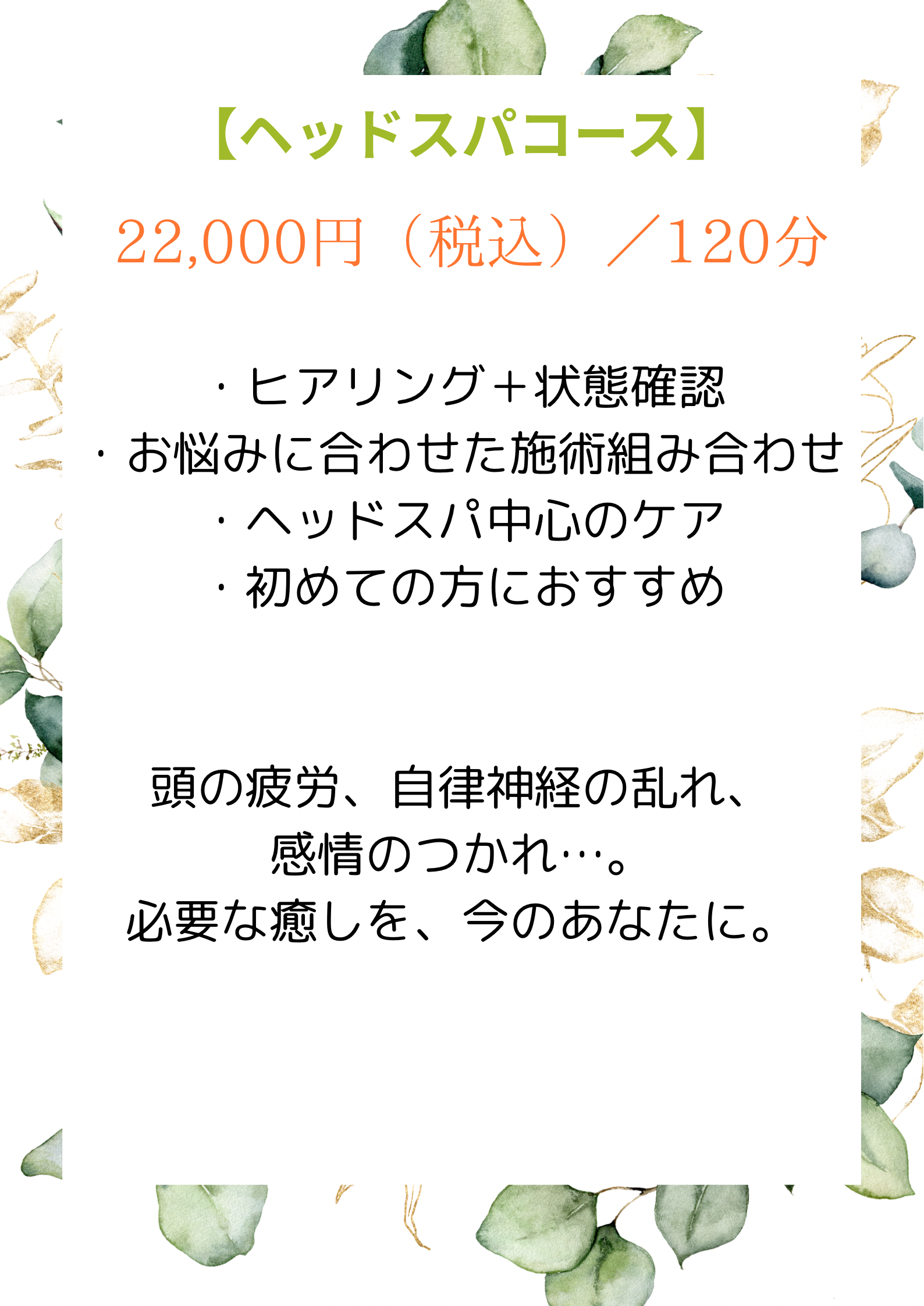 それらを頭皮・首・肩、フットから整え、あなたが静かに“本来の自分”に還る時間をつくります。
